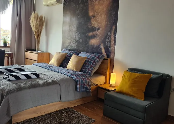Plaja Chaika se află la 10 minute cu mașina de acest apartament spațios. Centrul orașului este la doar 1 km, iar aeroportul Burgas se află la 35 de km de cazarea pe malul mării.